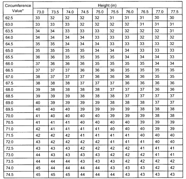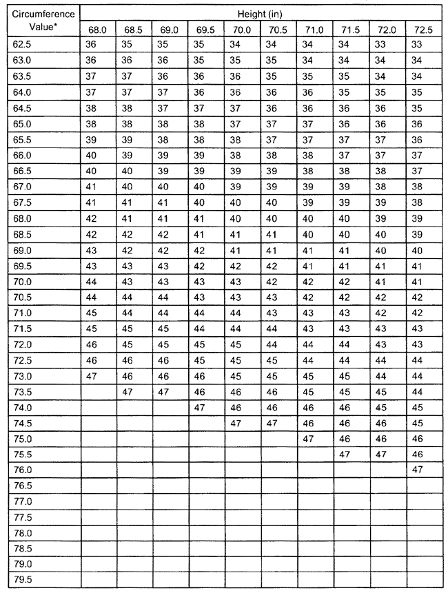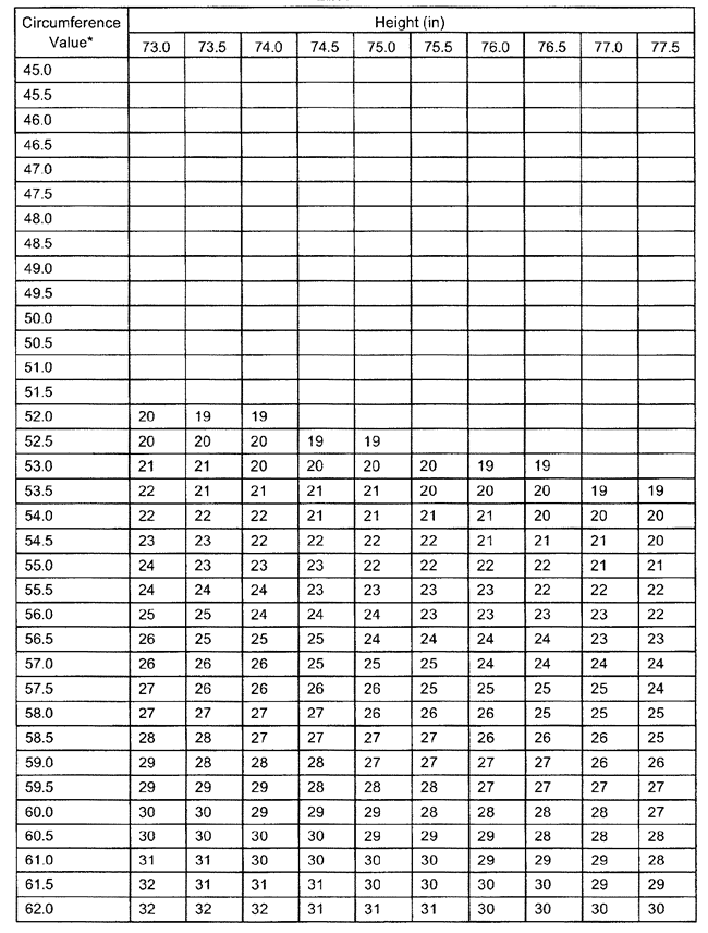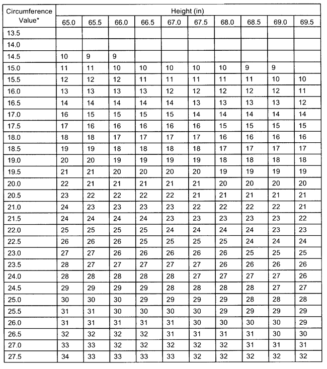d. The tape measure will be made of a nonstretchable material, preferably fiberglass; cloth or steel tapes are unacceptable. Cloth measuring tapes will stretch with usage and most steel tapes do not conform to body surfaces. The tape measure will be calibrated—that is, compared with a yardstick or a metal ruler to ensure validity. This is done by aligning the fiberglass tape measure with the quarter inch markings on the ruler. The markings will match those on the ruler; if not, do not use that tape measure. The tape will be 1⁄4- to 1⁄2-inch wide (not exceeding 1⁄2 inch) and a minimum of 5 to 6 feet in length. A retractable fiberglass tape is the best type for measuring all areas. Tapes currently available through the Army Supply System (Federal Stock Number 8315–00–782–3520) may exceed the 1⁄2-inch width limits and could slightly impact on circumferential measurements. Efforts are being made to replace the supply system tape with a narrower retractable tape. In the interim, the current Army supply system or any other fiberglass tape not to exceed 5⁄8 inch may be used if retractable tapes cannot be purchased by unit budget funds available and approved by installation commanders.